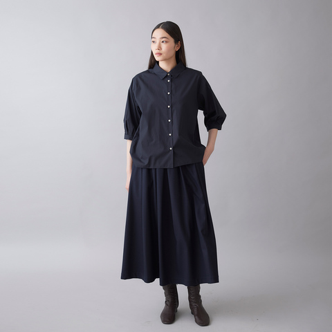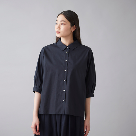 やや大きめのレギュラーカラーが顔まわりをシャープにみせてくれます。