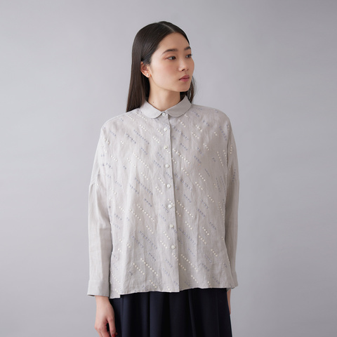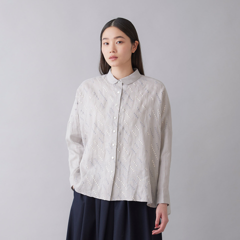 メンズシャツをベースにしたゆったりとしたシルエットに、深く落としたドロップショルダーは着るだけでこなれた印象に。