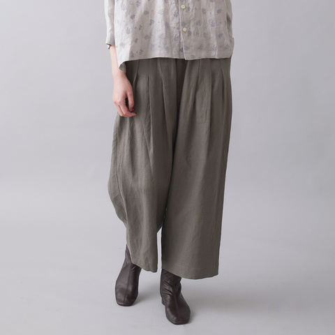 リネンならではのナチュラルな風合いと秋色の深みが、大人の着こなしを引き立てます。