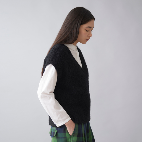 アウターを着る前の季節にちょうどいい、ブークレニットのベスト。