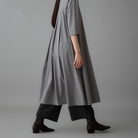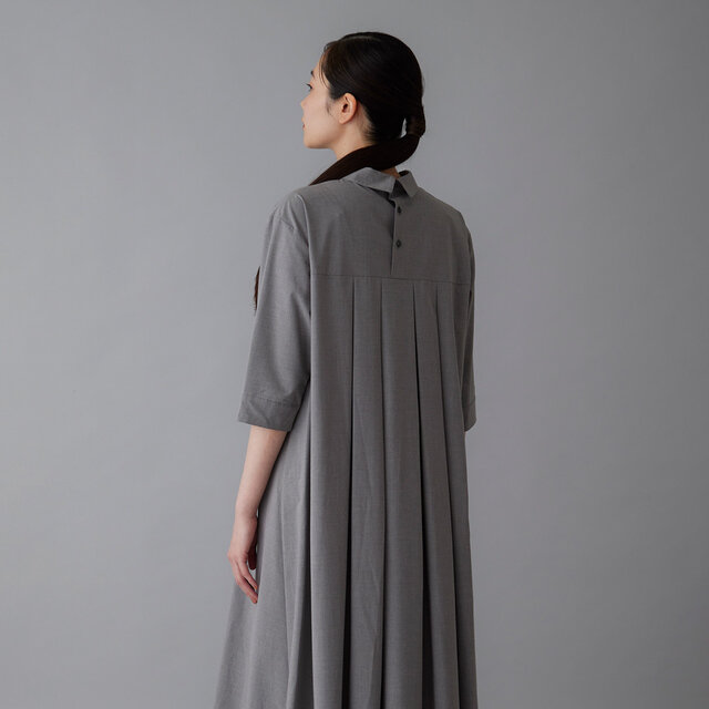 ミニマルな重ね襟が 穏やかな女性らしさを添えます。