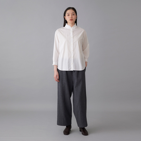 ジャケットやニットを重ねたときにちらりとのぞくフリルが、スタイリングに華やぎを添えてくれます。