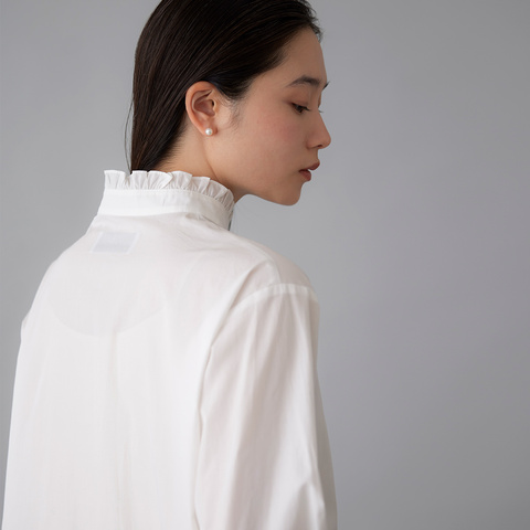 清潔感あふれるシロ。小さめのフリルが映えることで、より一層上品で女性らしい印象に。どんなアイテムとも相性が良く、セレモニーからデイリーまで幅広く活躍します。