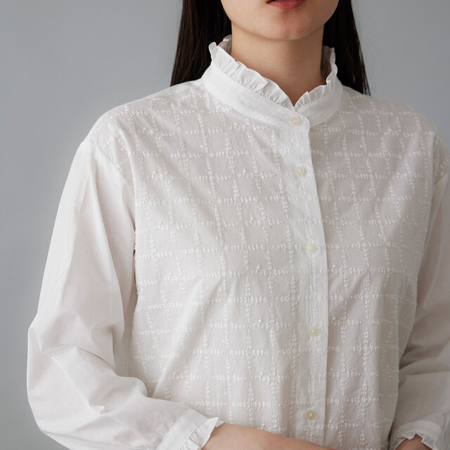シロは上品で清楚な印象。柔らかなシロの刺繍糸が生地になじみ、さりげない立体感を生み出します。