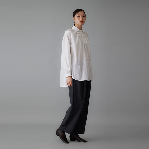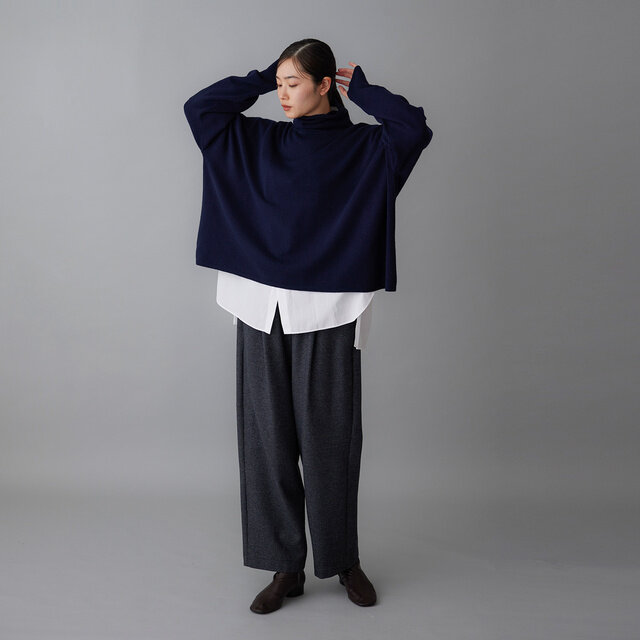 やわらかな素材にキリッと入るワンタックが、シルエットを引き立てます。