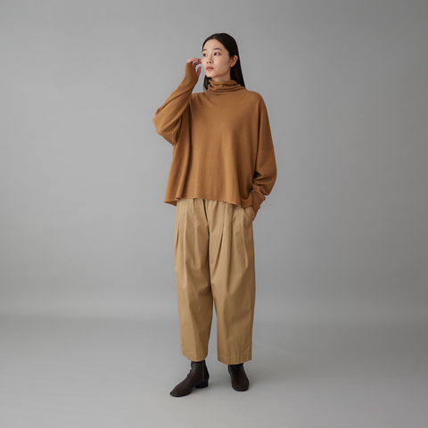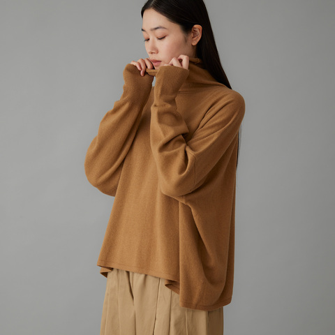 柔らかなぬくもりと、リラックスシルエットのハイネックニット