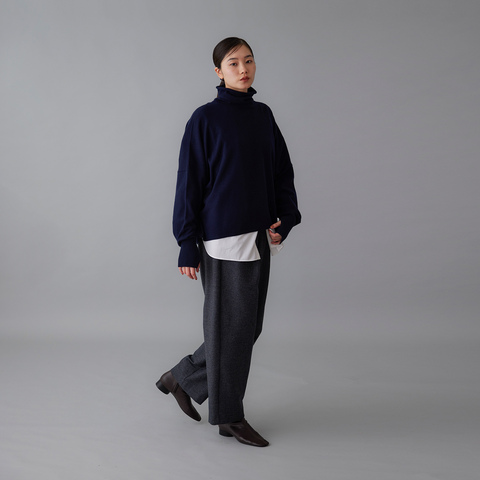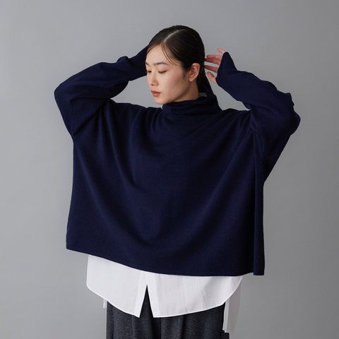 一枚で着てもレイヤードしても美しく決まる、上質なハイネックニットです。