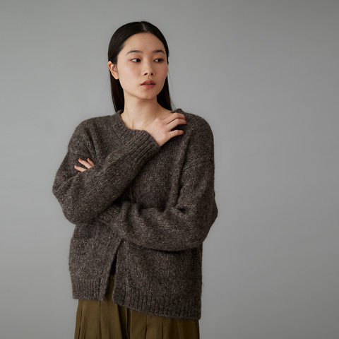 空気をたっぷり含む編地が身体をやさしく包み込み、ほどよいボリュームがありながらも驚くほど軽やかな着心地を実現。