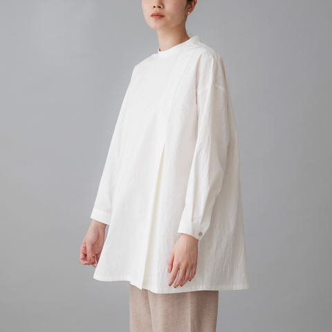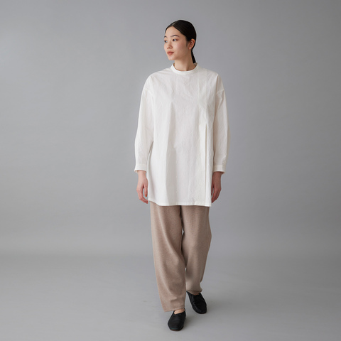 洗いざらしたような自然な表情と、軽やかな風合いが魅力のロングブラウス。