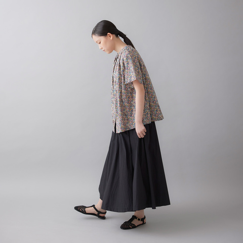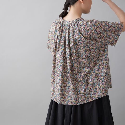 襟もとから丁寧に寄せられたギャザーが、自然なふくらみと奥行きを生み出します。