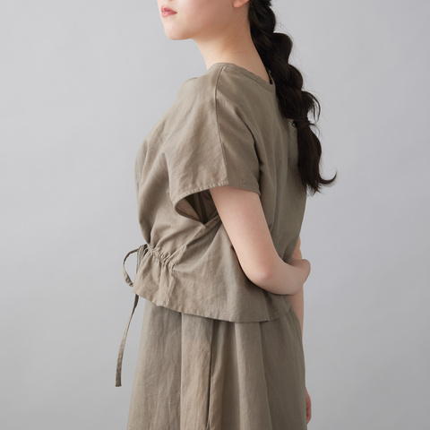 リボンを前できゅっと結べばメリハリのあるシルエットに、後ろに回せばすっきりと、1枚で2つの表情を楽しめるデザインです。