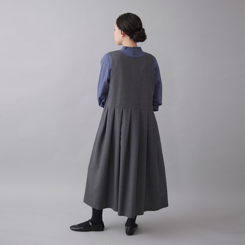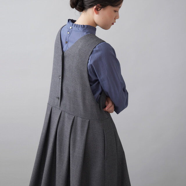 アームホールも大きくとっているため、ブラウスはもちろん、ニットともきれいに重ね着ができます。