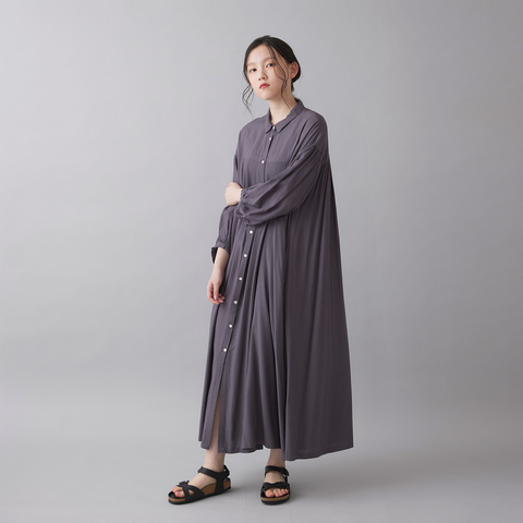 環境にやさしい再生繊維「モダール」を使用し、シルクのような光沢と美しいドレープ感をまとった一着です。