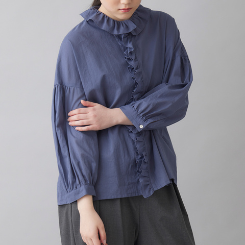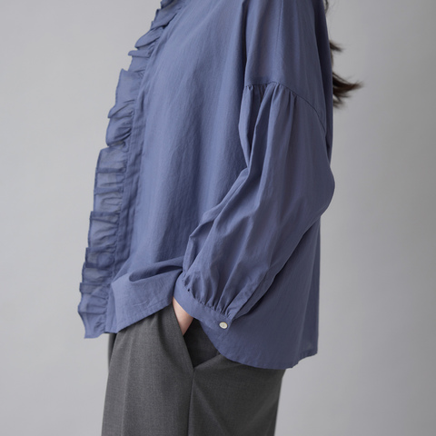 フロントのフリルは二枚仕立てにすることで、立体感と程よいボリュームを演出。