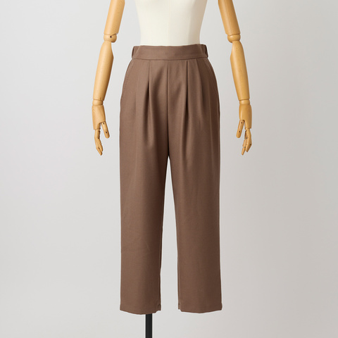 フロントの2タックが腰まわりにゆとりを持たせつつ、裾に向かって細くなるテーパード型で、すっきりとした印象をつくります。