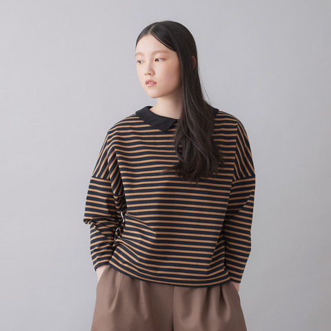 肩のラインを落としたドロップショルダーで、リラックス感のあるシルエットに。