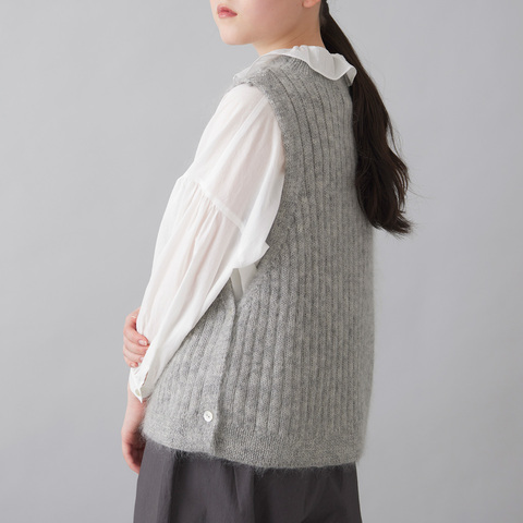 生後1年未満のアンゴラヤギから取れる「キッドモヘア」を使用した、やわらかくあたたかみのあるニットベストです。