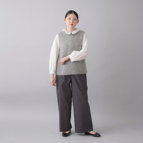 リブ編みの縦ラインがすっきりとした印象をつくり、自然な立体感をプラスします。