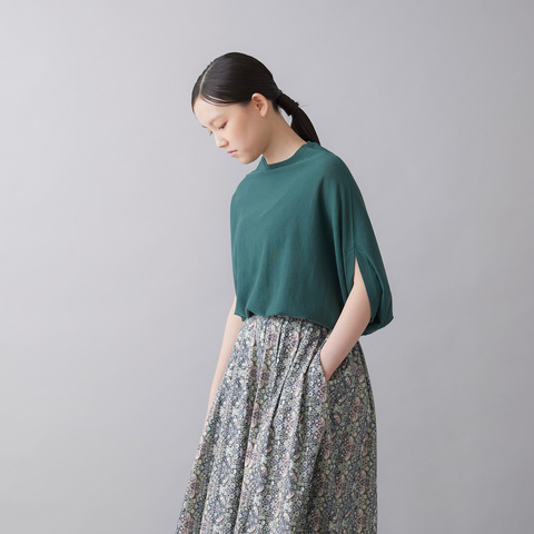 しなやかな落ち感と、袖のスリットがアクセントになったドルマンプルオーバー。