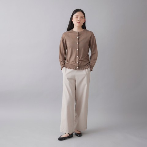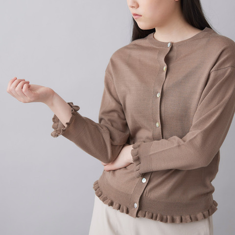 裾と袖口にあしらったラッフルが、さりげないフェミニンさを添えるカーディガン。