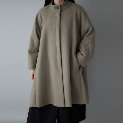 ラグランスリーブのゆったりとしたシルエットで、厚手のニットの上にも軽やかに羽織れます。