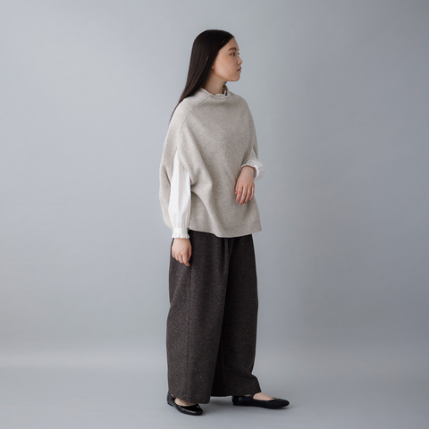 シンプルなワンピースとも合わせやすく、装いにふんわりとした奥行きを添えます。