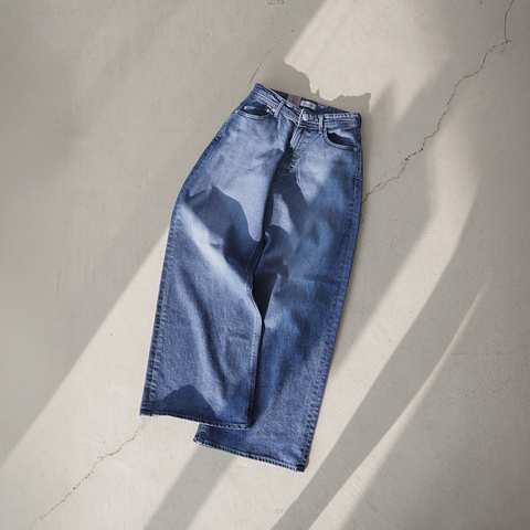 加工感を抑えたブルーカラーがクリーンな印象を与え、カジュアルにもきれいめにも対応。春夏はTシャツと、秋はニットとの相性も抜群で、季節を問わずに活躍する一本です。
