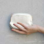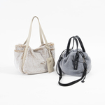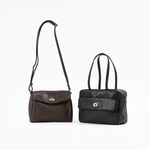 部分的にレザーを配置し、上質感とさりげないデザイン性を加えました。マチ部分にはきらりと輝くゴールド箔でロゴを刻印した飾りで凛としたムードをプラス。