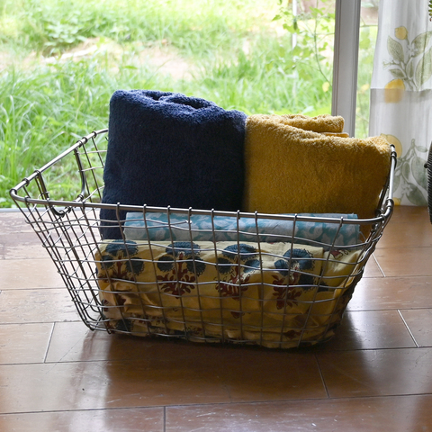 スクエア型のバスケットは、鉄を使って職人が仕上げた手仕事の一品。