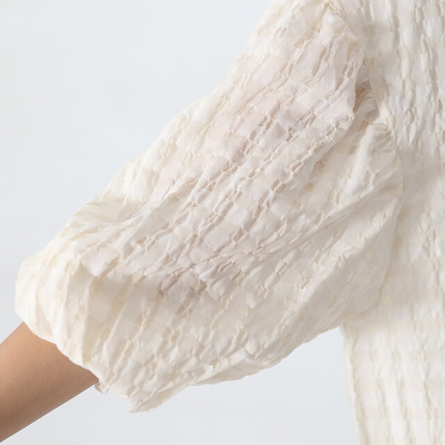 WHYTO.|ドットブラウス 長袖 シャツ slit neck dot blouse スリットネック ボリューム袖 オケージョン フォーマル セットアップ WHT24FBL4052 ホワイト