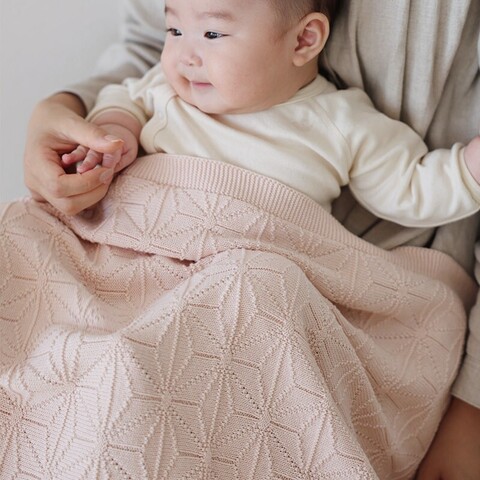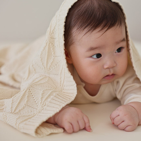 オーガニックコットン100%の糸で編んだCOFUCU人気のおくるみ 。