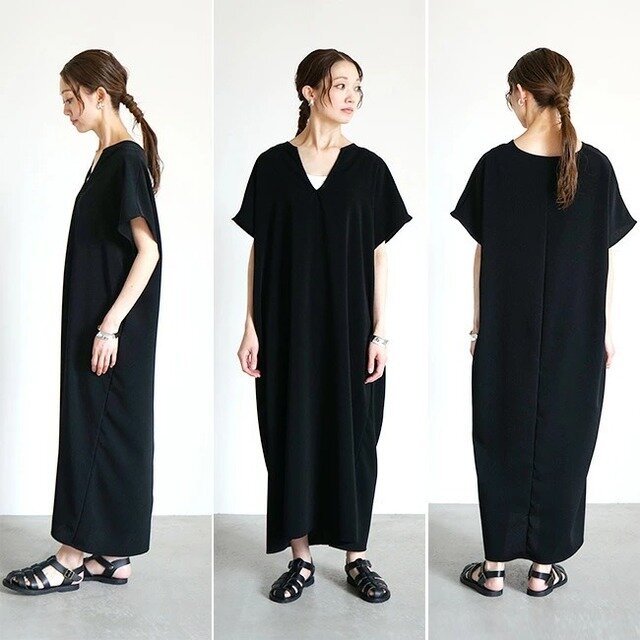 SOLAMONAT|丹後ちりめん スキッパーマキシワンピース sma-chiriopcd