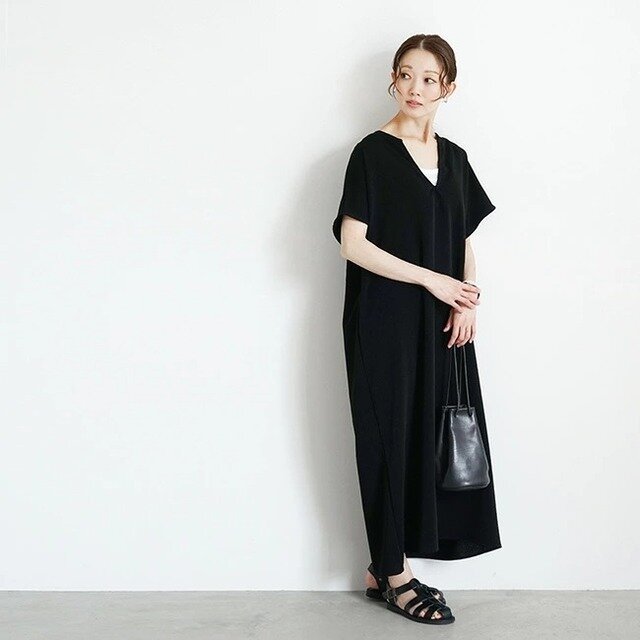 普段使いはもちろんのこと、式典などのオケージョンシーンにも◎ 落ち感のある美しいシルエットが目を引く、上品なロングワンピースです。