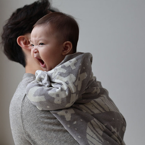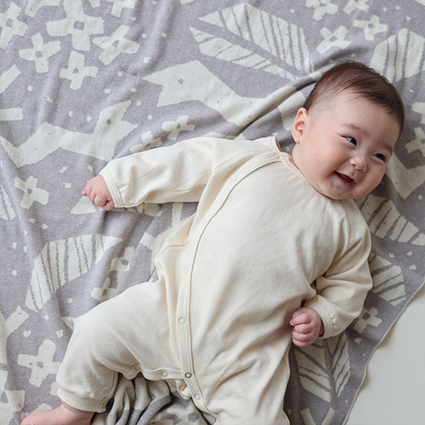 生まれたてはおくるみとしてお使いいただけて、お昼寝に掛けたり、リビングで敷いたり、巻いたり、羽織ったり。