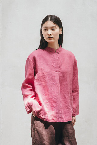 小さなボタンと大きなポケットがアクセント。バンドカラーのプルオーバー