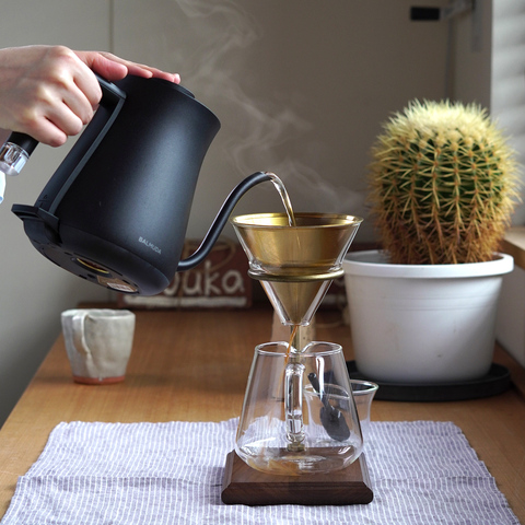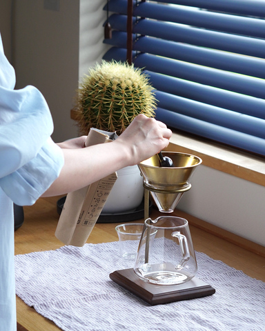 日々のコーヒー時間を格上げする、真鍮スタンドと陶器のカラフェが美しく調和したコーヒーブリューワースタンドセット。