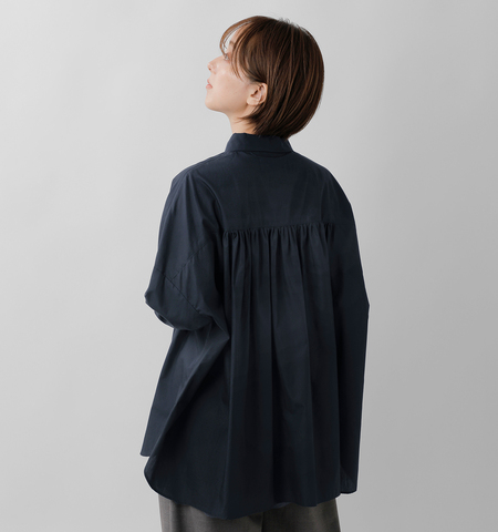 背面に施されたギャザーがアクセントとなり、シンプルな中にも表情豊かな一枚に仕上げました。