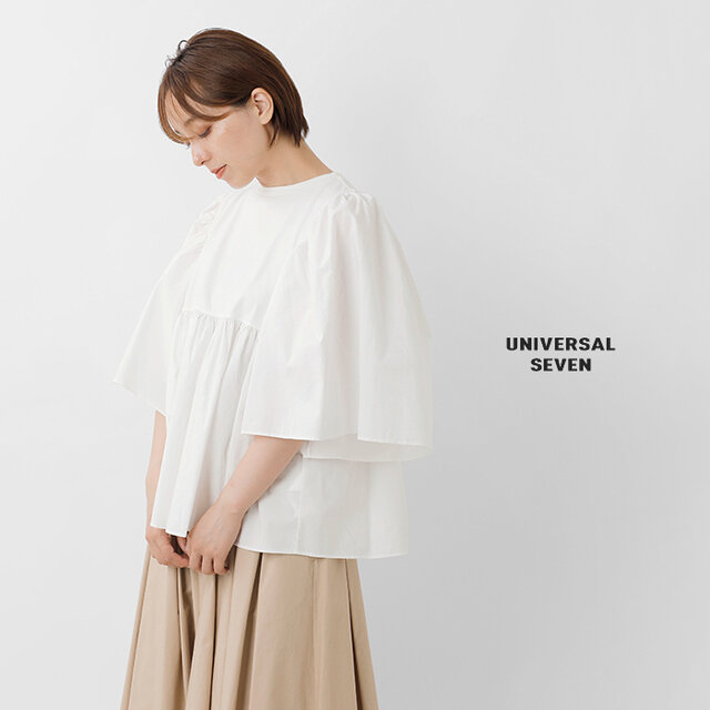 universal seven(ユニヴァーサルセブン)よりクラシック天竺 バイカラー ギャザー フレア プルオーバーのご紹介です。