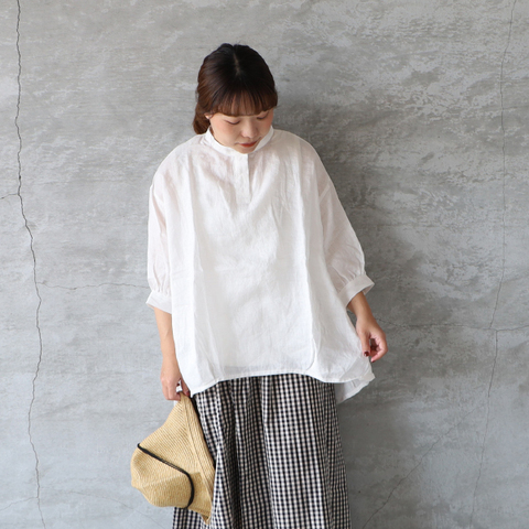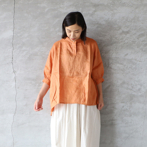 ナチュラルな風合いとこなれ感が魅力のリネンキャンバスタックブラウス