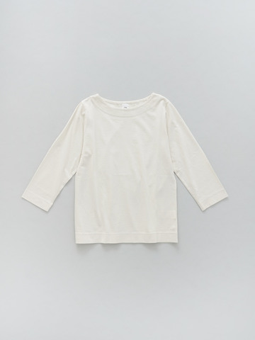 わずかにシェイプしたウエストラインと七分袖が女性らしい雰囲気を出しつつ、襟ぐりのあきを控えめにすることでインナーを気にせず動けるデザイン。ボーイッシュなスタイルにも最適です。