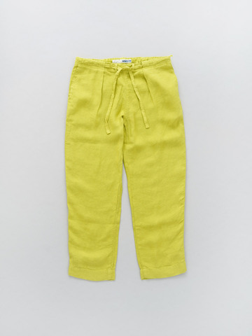ワンサイズ展開ですが、股上やヒップ周り、パンツ丈やシルエットなど、さまざまな体形を想定してパターンをひくことで、ユニッセックスに着られるように工夫がしてあります。ややテーパードのラインでラフになりすぎないイージーパンツです。