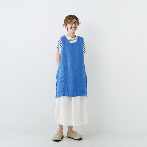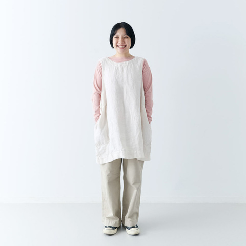 そのまま被って着たり、サイドの紐をキュッと結んですっきりとした着こなしを楽しんだりとスタイリングの幅が広がるデザインです。パンツやスカート、ワンピースなど下に着るものを選ばず合わせやすいのも嬉しいポイント。日々の着こなしにプラスしやすい雰囲気が魅力です。