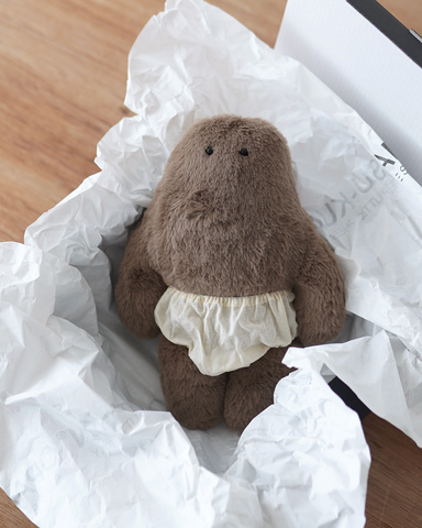 やさしいブラウンカラーと、どこかとぼけた表情が魅力で、思わず笑顔になるアイテムです。