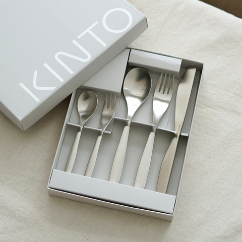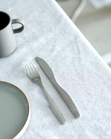 落ち着いたつや消し加工と控えめな曲線美で、毎日の食卓に自然と溶け込むカトラリーセット。