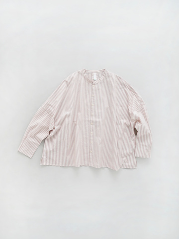 パノラマの景色のような長方形から着想を得た、ランドスケープという名前のシャツです。ワイドな身幅で、身体のラインを拾いにくい安心感のあるデザインです。着用すると脇にドレープが生まれ、広がりすぎず程よいボリューム感で着ることができます。