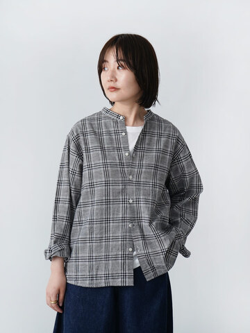 身巾も大きすぎず、スタンドカラーの襟元ですっきりと着ることができるシャツです。