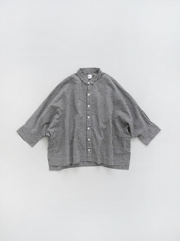 裾に向かって広がるポンチョのようなシルエットが特徴のシャツです。シンプルなボトムに合わせるだけでコーディネートのポイントになります。
