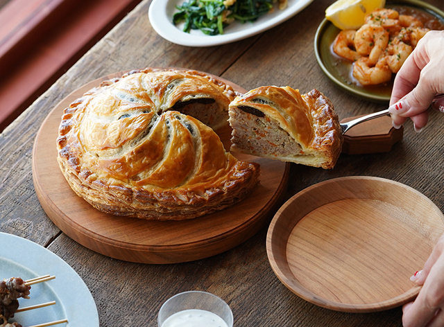 自然な木の大らかな風合いが料理を引き立て、食卓をぐっと華やかに演出してくれます。