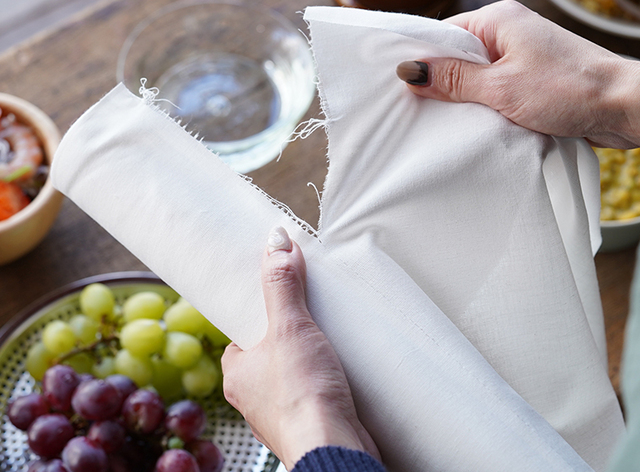 食品まわりや食器拭きに使用した晒が汚れてきたら、テーブルやキッチンなどの台拭きとして。さらにへたってきたら、家具や窓、床などを拭く掃除用に使い、最後はありがとうの気持ちを込めてお別れです。