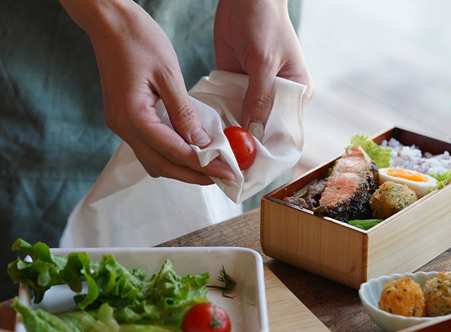サラダやお弁当に入れるレタスやミニトマトなど、洗った野菜や果物の水気を切る時に。梅酒をつくる時など、洗った果実の水分の拭き取りに。